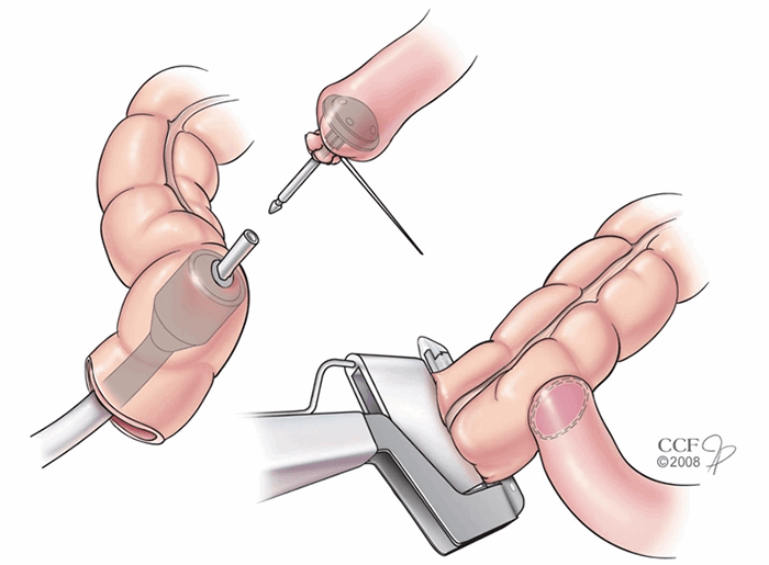 Figure 4. End-to-side ileocolic anastomosis with a circular stapler. Reprinted with permission, Cleveland Clinic Center for Medical Art & Photography © 2007-2019. All Rights Reserved.