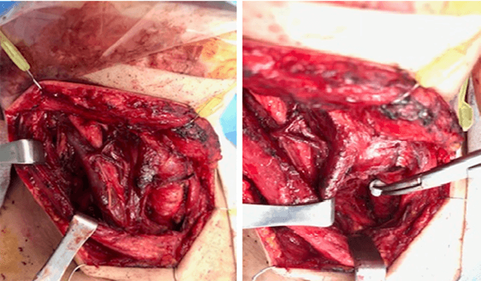 Figure 4. Intraoperative photographs demonstrating a total thyroidectomy, with central cervical lymph node dissection