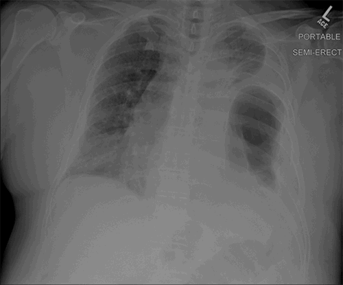 A male patient with exacerbation of his chronic obstructive pulmonary disease (COPD) presented with severe coughing and developed a ruptured left hemidiaphragm requiring emergent surgical repair.