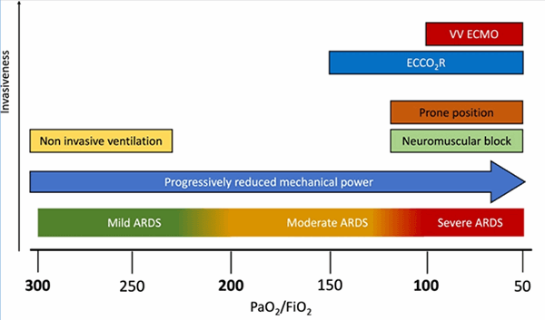 Figure 2. Sequence of interventions in the course of acute respiratory distress syndrome (ARDS) in current clinical practice, according to Berlin definition. Extracorporeal carbon dioxide removal (ECCO2R); venovenous extracorporeal membrane oxygenation (VV ECMO). Reproduced from Quintel et al.10 with permission.