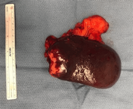Figure 2. Resected Spleen with Tumor. Published with Permission