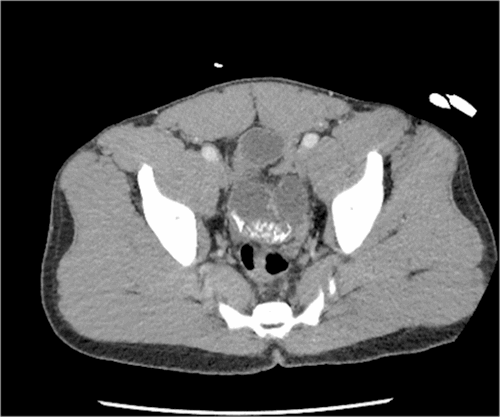 A 41-year-old previously healthy Libyan male presented with a two-day history of nausea, vomiting, and abdominal pain. He reported an inability to tolerate sips of water. He describes no changes in his diet and no strange or abnormal items being ingested before this episode. He had never experienced this type of pain or bloating before. He had a very firm, muscular abdomen with severe distention. He was diffusely tender but did not have signs of peritonitis. He was mildly tachycardic to 110 beats per minute. At this time, his laboratory evaluation showed acute kidney injury with creatinine elevation to 2.5 mg/dL and hypochloremic, hypokalemic metabolic alkalosis from repeated emesis. Given this clinical picture, a CT scan was obtained, which showed a high-grade mechanical obstruction in the distal ileum associated with a calcified density or mass (Figure 1). Additional calcified densities were identified more proximal in the small intestine located in the pelvis (Figure 2). Due to the high-grade obstruction and the calcified mass, surgical intervention was recommended. The patient was very hesitant initially but finally agreed to undergo exploratory laparotomy with possible small bowel resection.