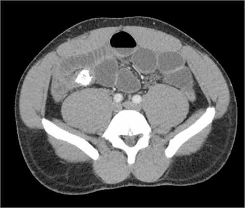 Figure 1. Calcified Mass in Terminal Ileum. Published with Permission