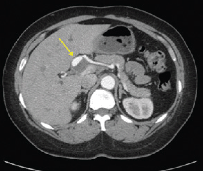 Figure 2. Axial View of Hepatic Artery Aneurysm on CT. Published with Permission