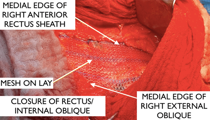 Figure 8. Mesh Onlay over Closure of Internal Oblique and Rectus. Published with Permission