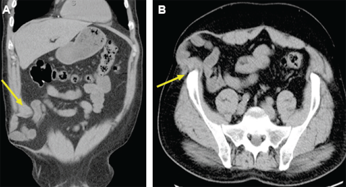 Figure 2. Preoperative CT Scans: Right-sided Incisional Hernia Lateral to Rectus Abdominis Muscle. Published with Permission