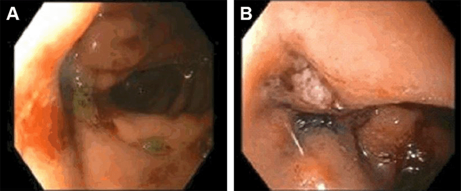Figure 3. Fistula Before (A) and After (B) Closure With Endoscopic Sutures. Published With Permission