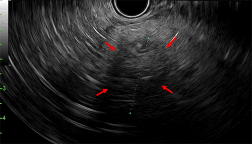 Figure 2. Endoscopic Ultrasound of Tail of Pancreas. Published with Permission