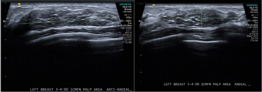 Figure 2. Diagnostic Ultrasound of Left Breast. Published with Permission