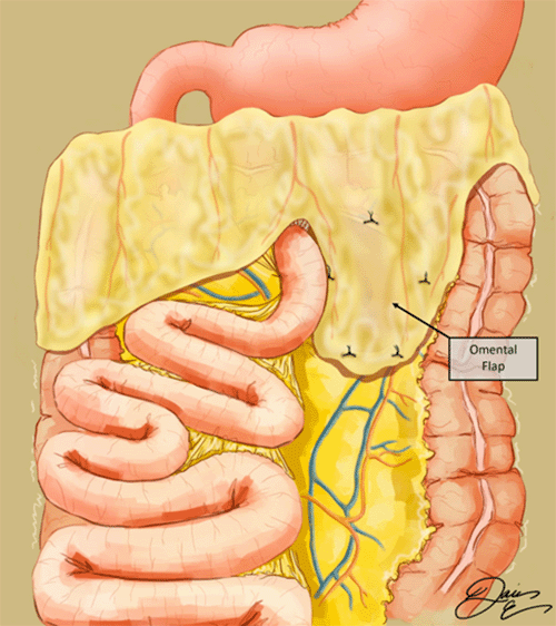 Figure 3. Omental Flap Secured Over Left Paraduodenal Hernia Defect. Published with Permission