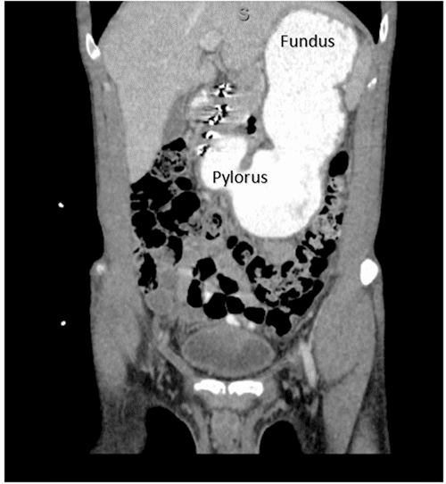 Figure 2. CT Scan of Abdomen and Pelvis with PO and IV Contrast Showing Severe Distention of Stomach. Published with Permission