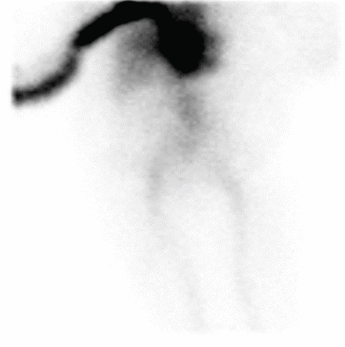 Figure 2. Nuclear Medicine Scan Showing Active Hemorrhage in Small Bowel. Published with Permission