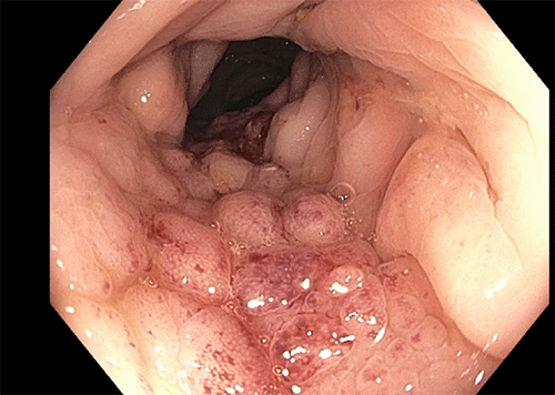 Figure 5. Second Colonoscopy Showing Progression of Intraluminal Process. Published with Permission