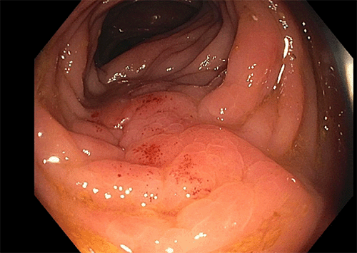 Figure 2. First Colonoscopy Showing Intraluminal Mass. Published with Permission