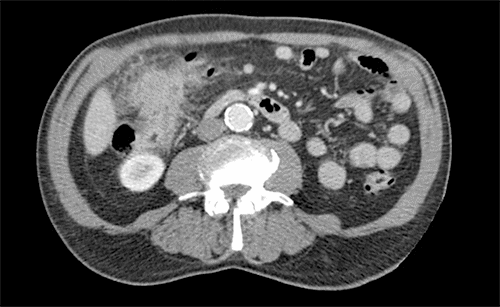 Figure 1. First Abdominal CT Scan Showing Hepatic Flexure Lesion. Published with Permission