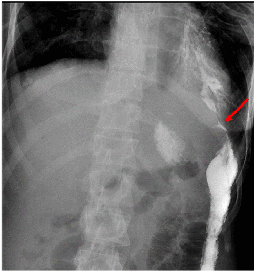 Figure 2. Barium Enema Confirming Presence of Colobronchial Fistula. Published with Permission