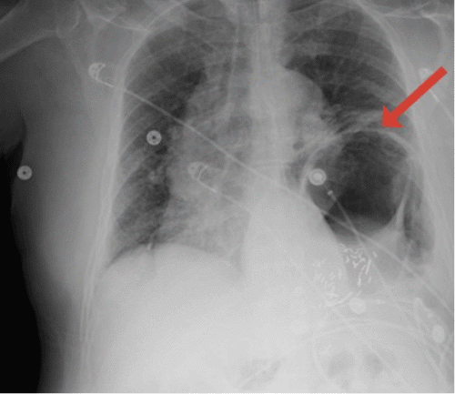 Figure 1. Chest X Ray Showing Left Diaphragmatic Hernia with Distended Gastric Bubble within Left Thoracic Cavity. Published with Permission
