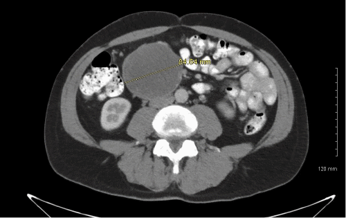Figure 1. Axial CT Showing Large Intra-Abdominal Epidermoid Cyst. Published with Permission