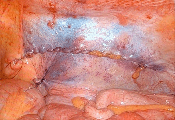 Figure 5. Peritoneal Closure with V-Loc Suture. Published with Permission