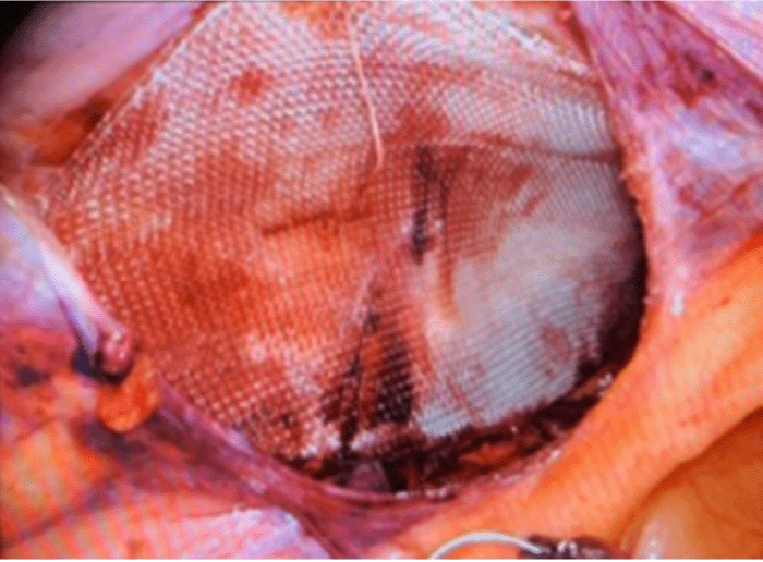 Figure 1. Right-Sided Dissection Revealing the Myopectineal Orifice with Pantaloon Hernias. Published with Permission