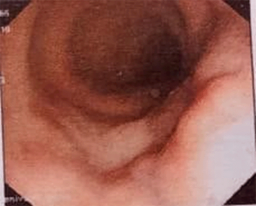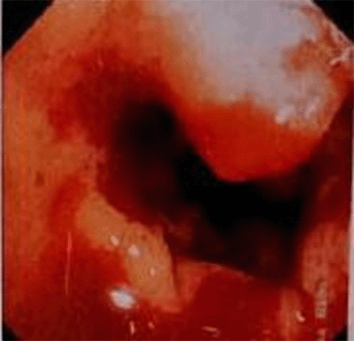 Figure 2. Colonoscopy Showing Nodular Area in Descending Colon. Published with Permission