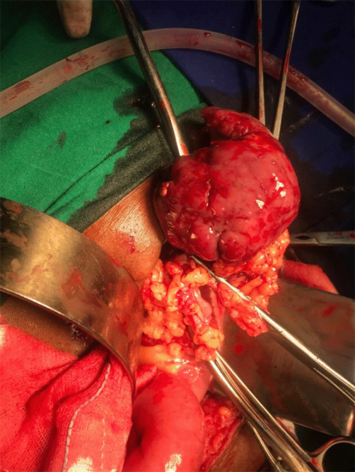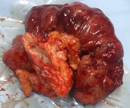 Figure 3. Intraoperative Image of Lesion and Resected Specimen Along with Part of Descending Colon. Published with Permission