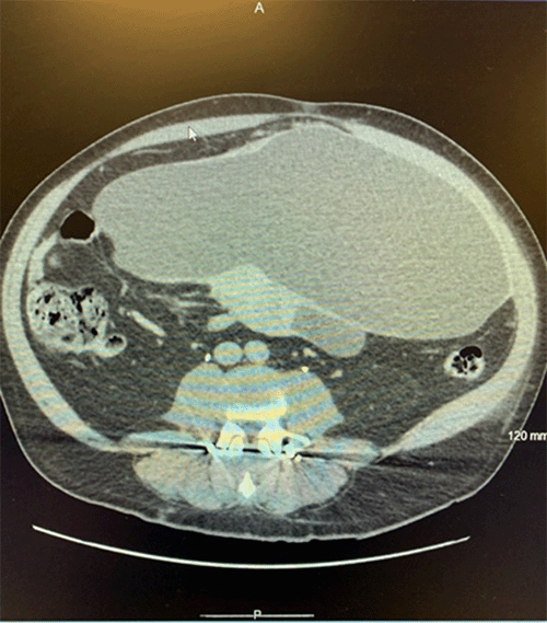 Figure 1. Abdominopelvic CT Scan of Giant Cystic Mass. Published with Permission