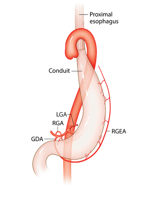 Figure 1. Schematic Illustration of Gastric Conduit Arterial Supply Post-Ivor Lewis Esophagectomy.