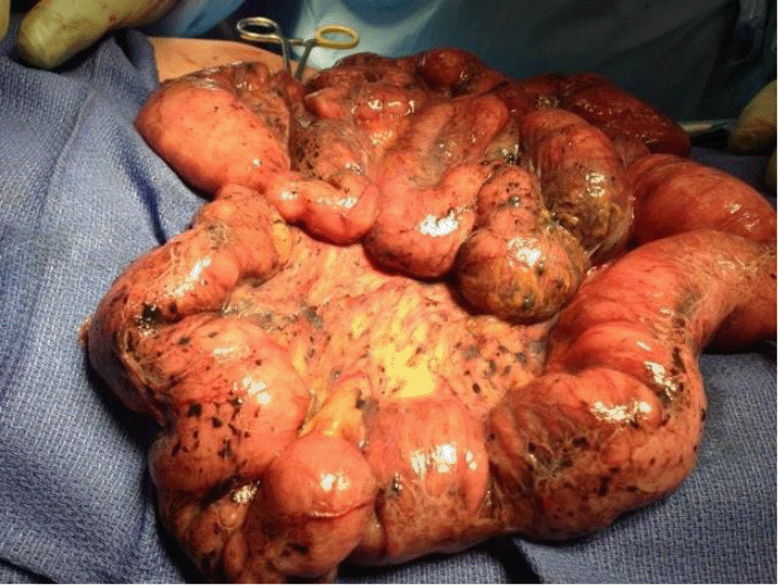 melanosis peritonei; small bowel mesentery; ionizing radiation; obstruction; complications; delayed complications