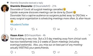 But it comes at a cost, and I think a Twitter exchange between two of our surgical chairs illustrates that point nicely (see Figure 1). They begin by talking about the fact that our surgical meetings were canceled, and it has been great because everything has been moved on to Zoom so travel is unnecessary. Unfortunately, organizers quickly realized that without travel, surgeons stay busy during working hours. As a result, many organizations have been scheduling meetings after hours and on weekends. Three out of the four weekends in October 2020, I was scheduled to give a talk or participate in a conference. Given the ongoing pandemic and challenges that we are going to face in 2021, we need to think about how we protect our personal time and not just add CPD to our other responsibilities.