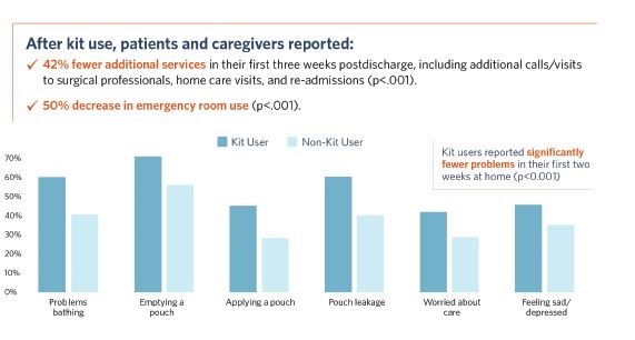 Significant progress has been made with the introduction and validation of the patient and caregiver kit. Nonetheless, much more can be done to improve the quality of life for ostomy patients, in particular during the first 30 days after an operation, as they tend to the care of their new ostomy.