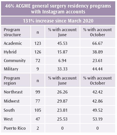 TABLE 3. ACGME GENERAL SURGERY RESIDENCY PROGRAMS WITH INSTAGRAM ACCOUNTS (October 21, 2020)