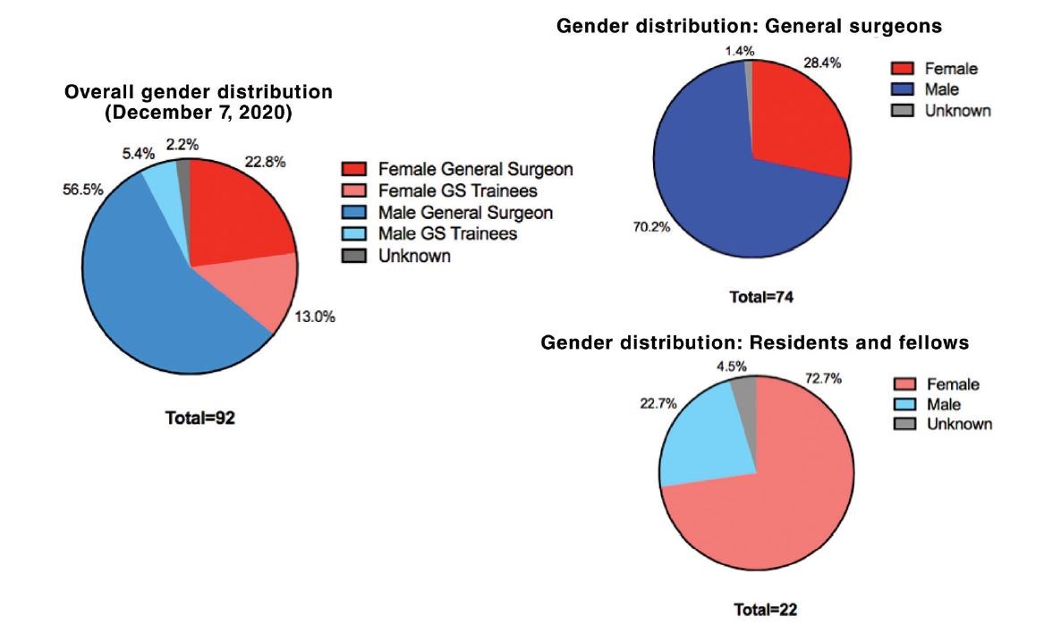 FIGURE 2. GENDER DISTRIBUTION OF GENERAL SURGERY INFLUENCERS (December 7, 2020) Overall, general surgeons, and general surgery residents and fellows