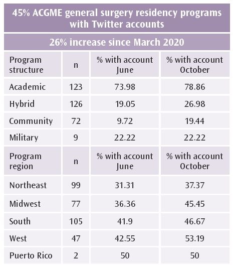 TABLE 2. ACGME GENERAL SURGERY RESIDENCY PROGRAMS WITH TWITTER ACCOUNTS (October 21, 2020)