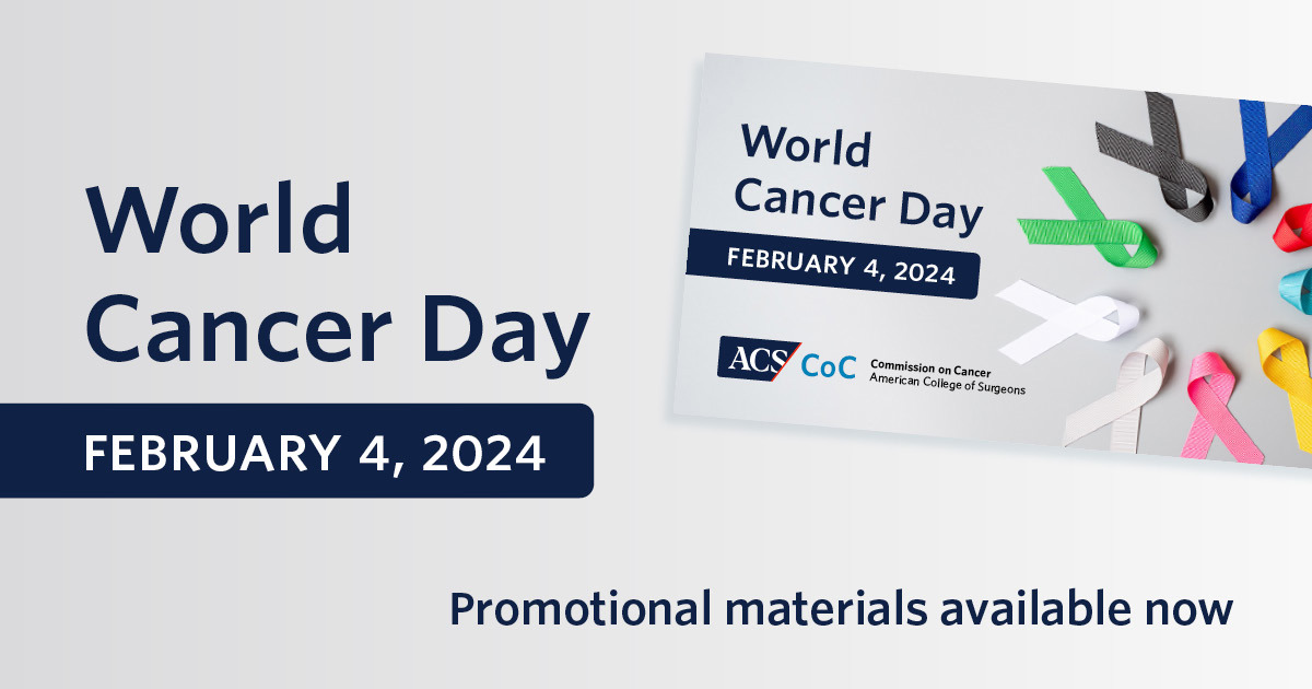 The Commission on Cancer (CoC), National Accreditation Program for Rectal Cancer (NAPRC), and National Accreditation Program for Breast Centers (NAPBC) encourage your site to recognize World Cancer Day. To help you promote this event within your program and the community, the CoC, NAPRC, and NAPBC have developed posters, social media and email signature graphics that can be downloaded from the Marketing Resources section in your site's Quality Portal (QPort).