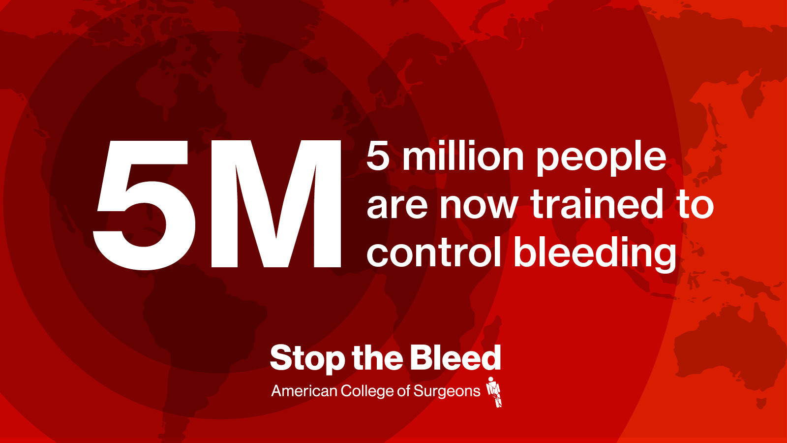 CHICAGO — The American College of Surgeons (ACS) Stop the Bleed program announced today that it has surpassed 5 million people who are now able to control severe bleeding and save a life. This milestone reflects the program’s exponential growth since its launch in 2016, with people now trained in all 50 U.S. states and at least 141 countries.