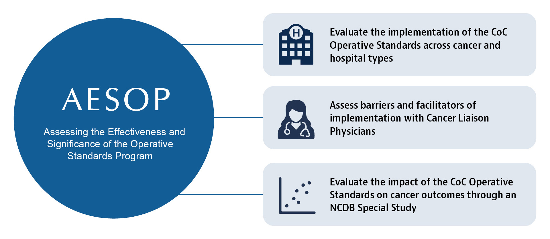 The Commission on Cancer (CoC) is a consortium of professional organizations dedicated to improving survival and quality of life for patients with cancer by setting and raising standards. We promote cancer prevention, research, education, and monitoring of comprehensive quality care.