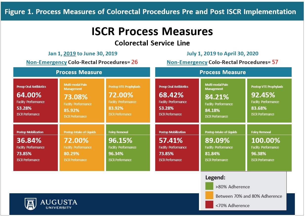 Enhanced Recovery After Surgery (ERAS) is a well-established multimodal program that encompasses all phases of care with standardized pathways in order to decrease variability amongst surgeons and improve patient outcomes. In colorectal surgery, ERAS has been shown to decrease length of stay, accelerate recovery postoperatively and improve outcomes leading to an overall decrease in cost.1-3 Improving Surgical Care and Recovery (ISCR) is grounded in these principles and offers tools and educational materials to facility implementation of these pathways.4